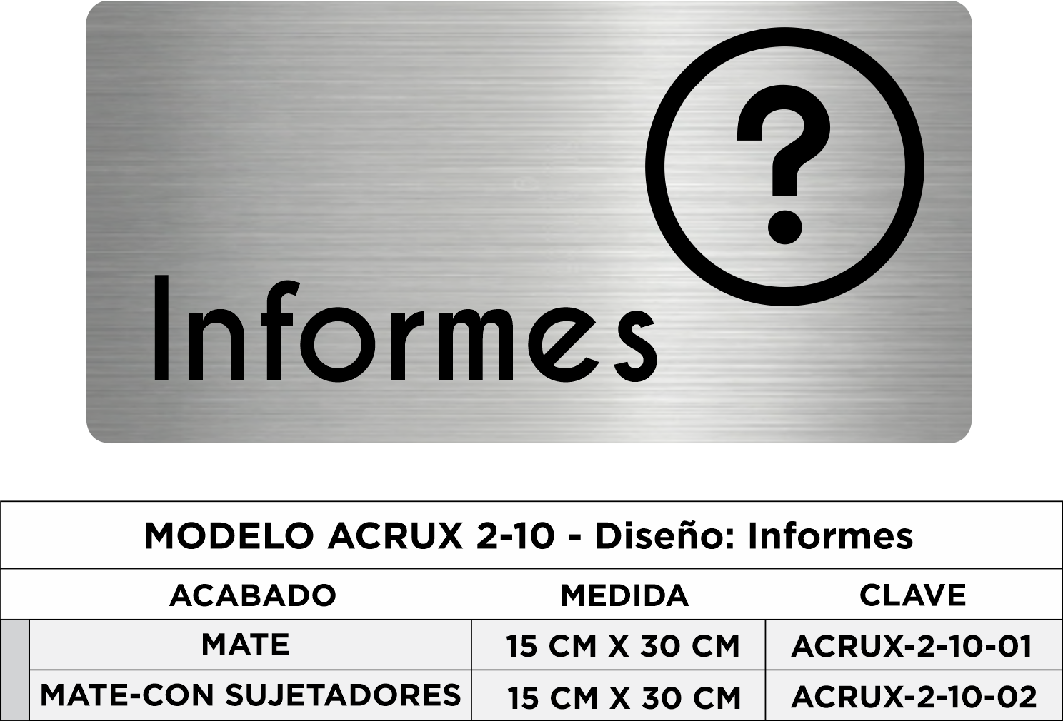 • Materiales : Panel de aluminio de 3 mm de espesor, acabado cepillado plata, esquinas redondeadas.