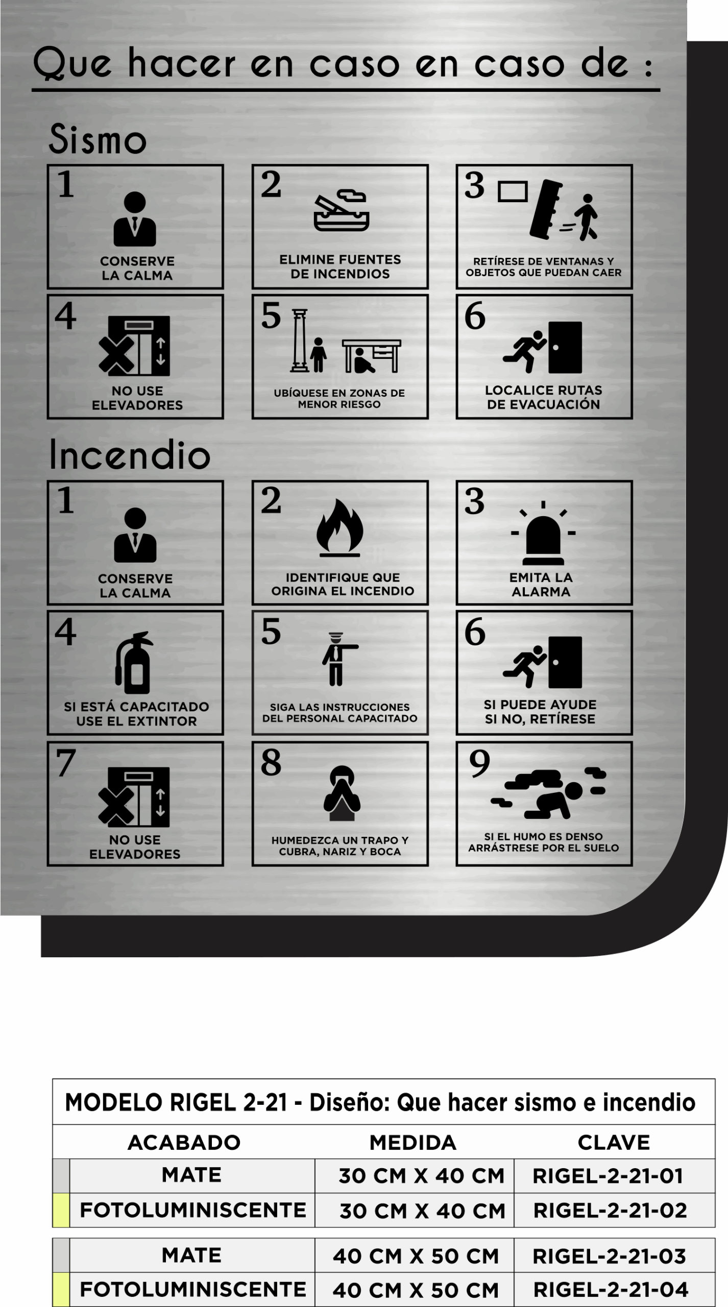 • Materiales : Panel de aluminio de 3 mm de espesor, acabado cepillado plata | Acrílico de 3 mm de espesor color especificado según modelo | acabado cantos pulidos.